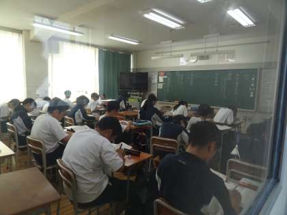 3校時の授業は、熟語の構成を理解しよう(国語)、熱が発生する化学変化(理科)、美術です。