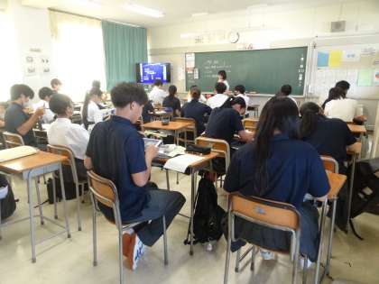 4校時の2年生の授業は、音楽、「日本」という国の特色/課題を理解しよう(社会)、実験のまとめ(理科・写真付き)です。3年生は、学習習得確認調査です。