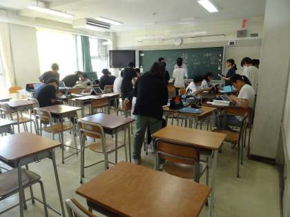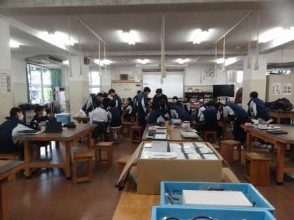今日はカジュアルデーです。1校時の授業は、ラジオ製作、数学です。