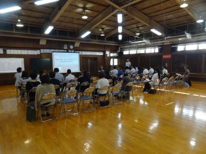 授業後に格技室にて保護者の方も交えて意見交換会を行いました。各学年からの報告、講師による講話でした。講話の中で、ある場面を想定して感じたことを参加者で話し合う活動も行いました。講師の原先生、貴重な講話をありがとうございました。また、参加された保護者や地域の皆様ありがとうございました。