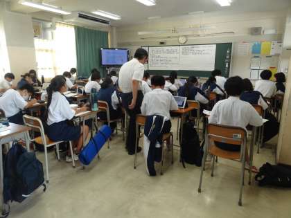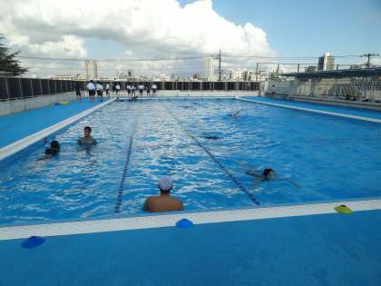 5校時の授業は、水泳(写真付き)、世界の宗教(社会)、グラフのかき方(理科・写真付き)です。