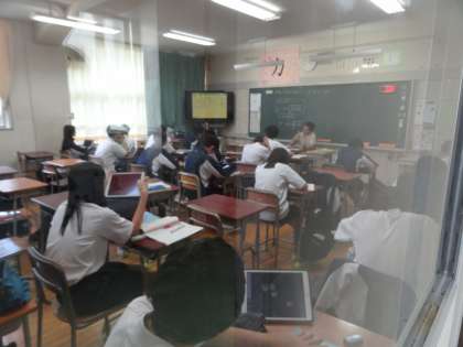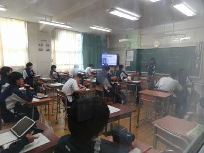 6校時の授業は、因数分解を利用して2次方程式を解く(数学)、発表(英語)です。
