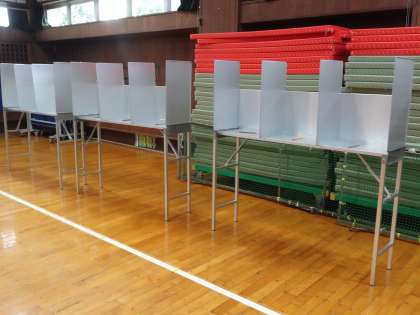 6校時に今年度後期生徒会役員選挙の立会演説会を行いました。立候補者と応援者はこれからの駒沢中学校の発展について演説しました。区から投票用の記載台と投票箱をお借りしました。