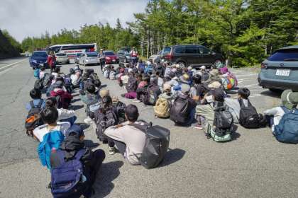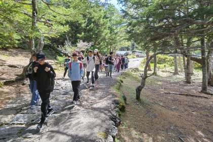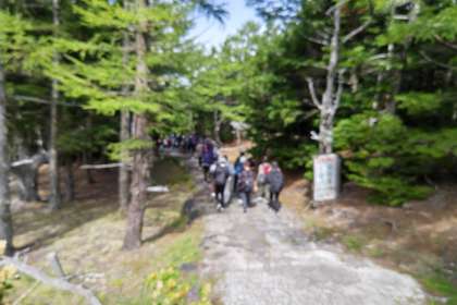 バスを降りて奥庭荘に向かって歩きます。霧があって周りは見えません。