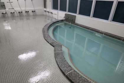 お風呂の時間が終わりました。男子は写真のお風呂に入りました。
