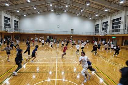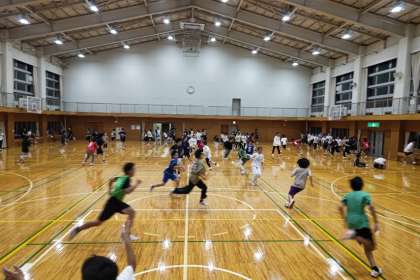 最後は鬼ごっこです。ゼッケンを付けた鬼役です。