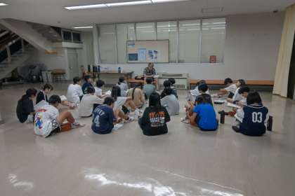 班長、室長会議が終わり、就寝準備をしています。消灯は22時です。明日はオリエンテーリングがありますので、しっかり休んでください。お休みなさい。1日目のホームページはこれで終わります。
