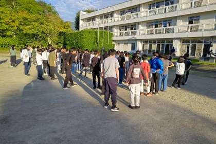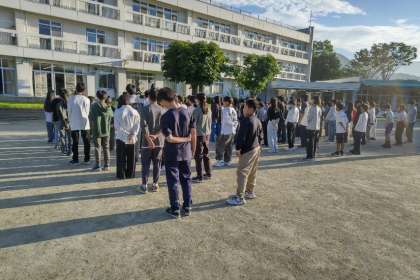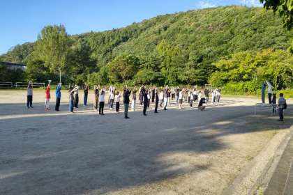 朝礼です。挨拶の後、ラジオ体操をしています。
