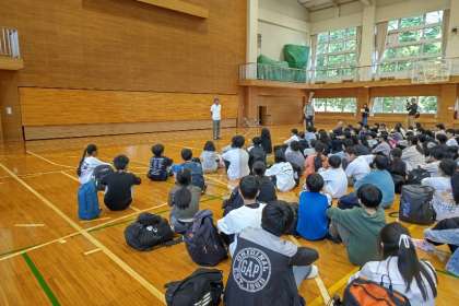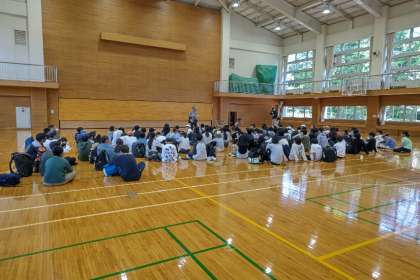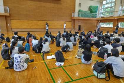 布団片付け、荷物を詰め込みました。その後、体育館で閉園式を行いました。