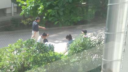 明日の運動会の会場準備を生徒のみなさんと先生方とで進めてくれました。写真は中庭をほうきで掃いている様子です。こんなにがんばって準備したのですから、明日に実施できるといいですね。