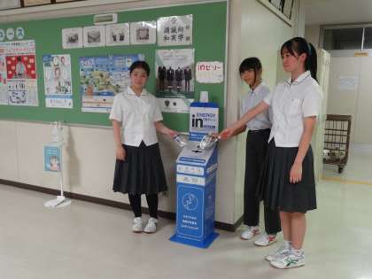 本校では、飲み終えたパウチゼリー飲料の容器を回収し、資源として新たなプラスチック製品へリサイクルする取組をしています。今日は日頃、回収した容器をリサイクルし、新たな製品として生まれ変わったトングの贈呈式が行われました。回収箱は体育館棟1階の出入り口にありますので、これからも容器の回収にご協力ください。