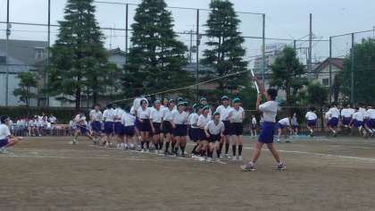 午前の演技と競技は11時40分に終了しました。雨が降り始めたため、午後のプログラムのうち人間台風の目、大ムカデ、ダンスまで午前に繰り上げて行うことにしました。