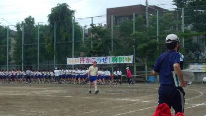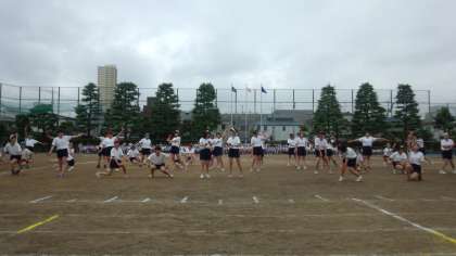 雨が降っているため、全員リレーまで午前に行います。午後は閉会式だけ行う予定です。
