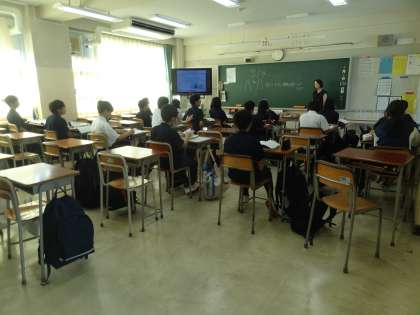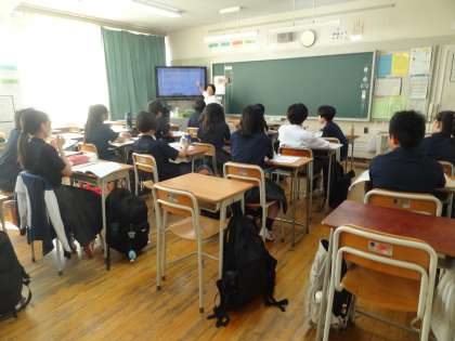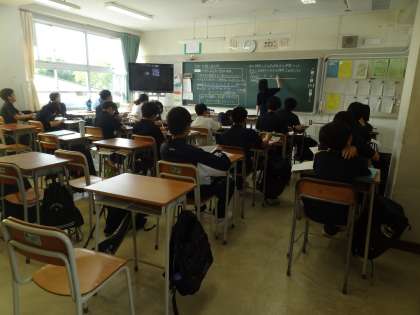 1校時の1年生の授業は、英語、比例と反比例(数学)です。