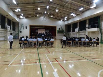 1校時の1年生は道徳(写真付き)です。2年生は、合唱コンクールのリハーサル(写真付き)です。3年生は合唱練習です。