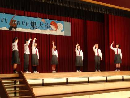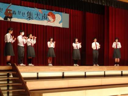 続いて手話部の発表です。「向日葵(ひまわり)」の曲を手話を使いながら歌いました。