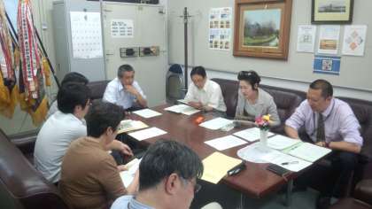 駒沢小、弦巻小、三軒茶屋小の校長先生と先生方が駒沢中に集まって、企画委員会を行いました。教務主任連絡会、生活指導主任連絡会、研究主任等連絡会をそれぞれ行い、今年度の取り組みについて確認しました。写真は学び舎主任連絡会の様子です。学び舎の活動が本格化します。