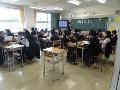 4校時の授業は、数学(写真付き)、蓬莱の玉の枝(国語・写真付き)、調理実習(家庭科)です。
