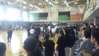 男女バスケットボール部が二回戦で惜しくも敗退です。午前中の女子の試合には間に合いませんでしたが、男子は本当にあと一歩でした。後半小さく守ってリバウンドをとり、よく走り、3点差まで追いつめました。あきらめない姿に感動です。女子、先生方、保護者の方々の大応援団は、駒沢中学校らしい、温かくアットホームな感じがして、こちらも感動しました。試合に出られなくても懸命に応援してくれた人たちもいます。すべての人に感謝ですね。