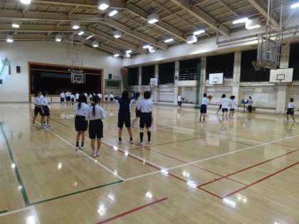 2校時の1年生の授業は、バスケットボール(保健体育・写真付き)、音楽、美術(写真付き)です。2年生は、植物は呼吸をするのか(理科・写真付き)、書写、英語です。