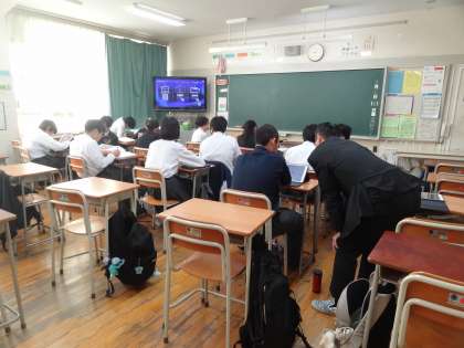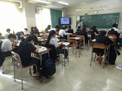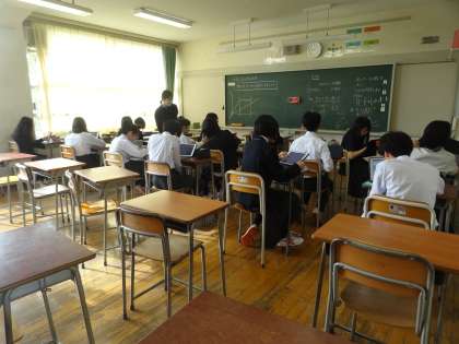 1校時の授業は、反比例の利用(数学・写真付き)、光の屈折(理科)、東南アジアの農業(社会・写真付き)です。