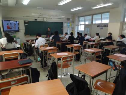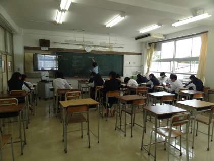 3校時の授業は、実像と虚像(理科)、バスケットボール(保健体育・写真付き)、英語(写真付き)です。