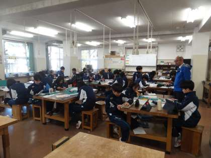 5校時の授業は、設計(技術・写真付き)、西アジア・中央アジア(社会・写真付き)、国文法(国語)です。