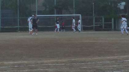 写真は放課後の校庭で一生懸命に練習するサッカー部の様子です。写真にはありませんが、野球部も校庭で基礎トレーニングに励んでいます。体育館と校舎の間のスペースでは、女子バスケットボール部がボールを使った練習をしています。体育館や教室、音楽室でも、各部活動が元気に活動しています。