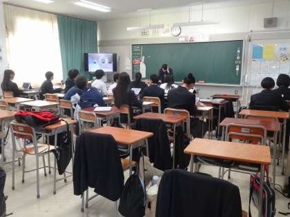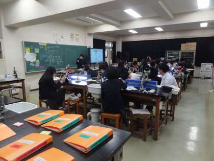 3校時の授業は、音楽、茎や根はどのように物質を運んでいるのか(理科・写真付き)、英語(写真付き)です。
