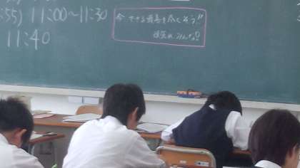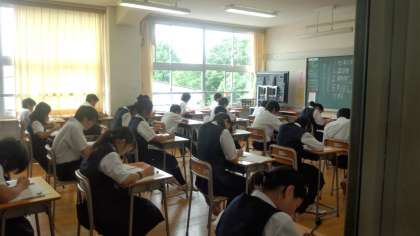 期末考査初日の様子です。真ん中の写真では「今できる最善を尽くそう!!がんばれ、みんな」と黒板に書いてあります。何か先生の思いが伝わりますね。庭にはもう朝顔が咲いていました。生徒のみなさん、花が咲くように、期末テストもうまくいくといいですね。