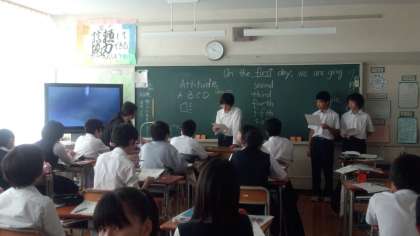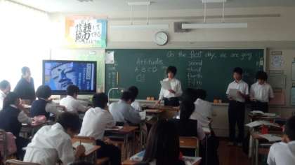 先日の学校日記で、2年生の英語の時間に、2学期に訪れる鎌倉についてのプレゼンテーションづくりを紹介しましたが、今日は発表の様子を参観しました。鎌倉の名所をICTを使って大きく映し、どの班もしっかりとbe going to 〜などの英語を使って、たいへんよい発表でした。発表を聞いている生徒も、発表に対して拍手したりして、たいへんよい雰囲気でした。思考したことを表現する授業です。