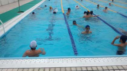 今日で1学期が終わります。写真は1年生の保健体育、水泳の授業です。みんな気持ちよさそうに泳いでいました。昨日より気温は低めですが、水温の方が2度高いそうです。2年生も3年生も、しっかりと授業を受けていました。