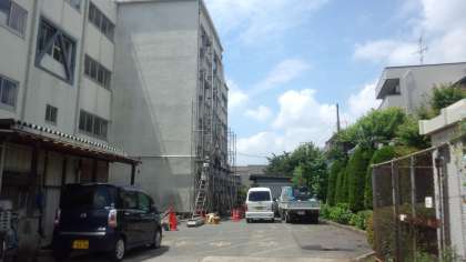 写真右は、トイレ工事の足場です。校舎内だけではなく、外壁からも工事をします。はやく新しいトイレになるといいですね。