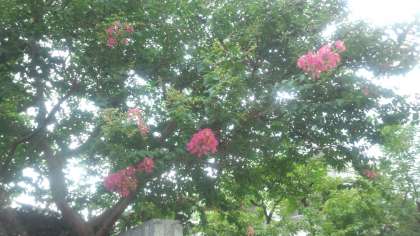 写真はバスケットボール部のフットワークと正門に咲いているサルスベリです。