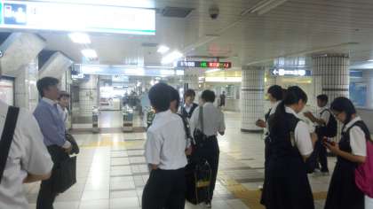 今日は生徒会サミットのメンバーと日本語サミットを見に、大手町の日経ホールへ行きました。駒沢中学校からは二人参加しました。外国で日本語を学んでいる外国人十二人のパネルディスカッションがありました。14才の成人式の参考になったのではないでしょうか。写真は、帰りの大手町の駅です。生徒の皆さん、副校長先生方、教育委員会の先生方、お疲れ様でした。