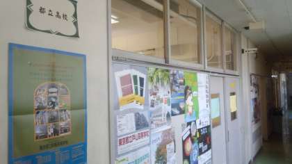 写真左は3年生の廊下です。高等学校など進路関係のポスターで埋め尽くされています。いよいよだなという雰囲気です。