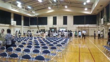 さて、保護者会であいさつをするために体育館に向かって歩いているとき、3人の3年生女子とすれちがいました。3年生女子は笑顔で軽く会釈したあと、「校長先生、夏休みの面接練習のプリントに、一人ひとり励ましのコメントを書いてくださって、ありがとうございました。」と話してくれました。こんなに心豊かな生徒がいる駒沢中をほこりに思います。こちらからもお礼を言いたいです。