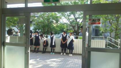 今日は2年生が鎌倉校外学習に出かけているので、1年生の候補者と応援者、栗山・坂本先生がさわやかに「おはようございます」とあいさつをしていました。