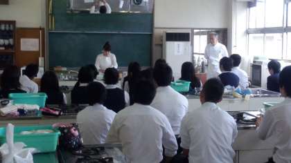 3年生の食育教室に(株)イル・ブルー・シュル・ラ・セーヌ企画の方々が来校くださって、食材本来の味わいについて学んだあと、大根のお味噌汁をみんなで調理して楽しく食べました。1クラス1時間という短い時間でしたが、すごく充実した食育教室でした。