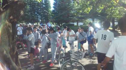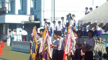 台風一過の晴天の下、開会式が行われました。駒沢中学校の選手も元気に参加しました。