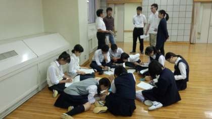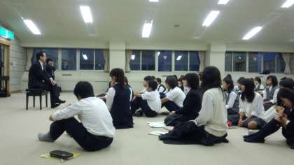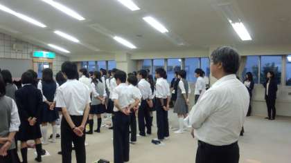 5時過ぎに宿舎に無事到着しました。開園式の後、さっそくブロック協議をしています。若井田教育長も到着し、生徒に激励のお話をしてくださいました。