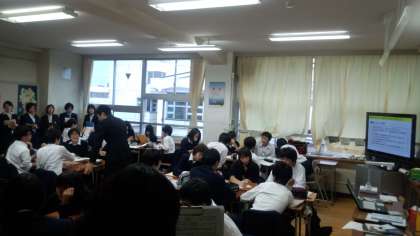 他の学校の先生方や教育委員会の方から、授業者と2年A組の生徒をほめていただきました。私が見ていても、たいへんよい授業でした。