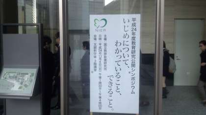 さて、昨日は文部科学省で「いじめについて、わかっていること、できること」というテーマで「教育研究公開シンポジウム」が開かれ、私も参加してきました。こうすればいじめはなくなるという結論はもちろん出ませんでしたが、未然防止の大切さ、授業や行事の中で、どの生徒も落ち着ける場所をつくりだす「居場所づくり」と、すべての生徒が活躍できる場面をつくりだす「絆づくり」、自己有用感を高めていじめに向かわせないことなどが提言されました。