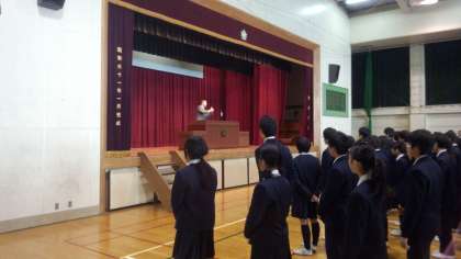 副校長先生は「期末考査が終わりました。返された答案の点数だけを見て一喜一憂するだけでなく、問題をよく見直してください。先生方が時間をかけて作った問題には、先生方の心がこもっています。そのことに気づいてほしい。そういうことも思いやりです。そして、それらの問題は、すべて授業につながっているのですから、授業を大切にしてほしい。」というお話をされました。
