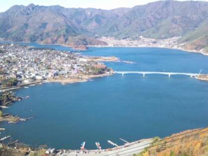 カチカチ山ロープウェイの頂上から撮影した河口湖です。(副校長)