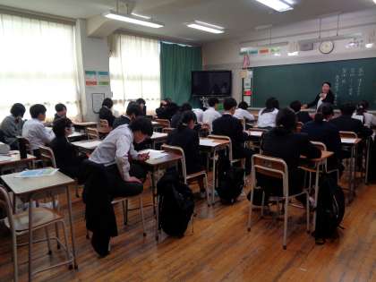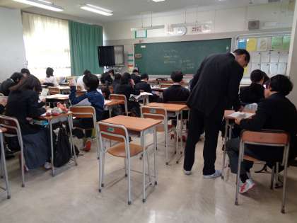 3校時の1年生の授業は、国語(写真付き)、数学(写真付き)です。2年生は英語(写真付き)、保健体育です。どの教科も定期考査の答案返却です。解説をしっかり聞きましょう。3年生は学習習得調査です。