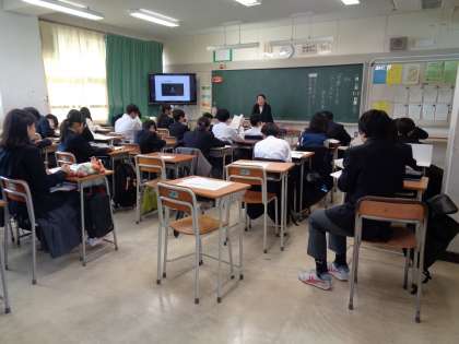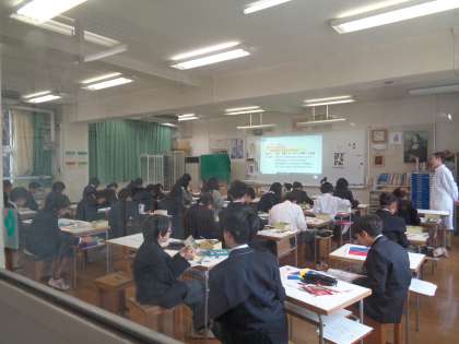 5校時の1年生の授業は、美術(写真付き)、「言葉」をもつ鳥 シジュウカラ(国語・写真付き)、バスケットボール(保健体育・写真付き)です。2年生は、関東地方の大まかな特色を理解しよう(社会)、理科、モアイは語る(国語)です。3年生は、三角形と比の定理を利用できるようにしよう(数学)、理科、英語です。