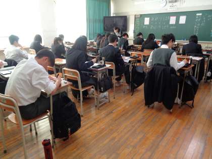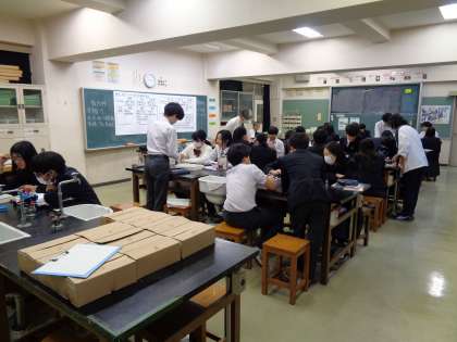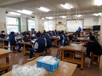 1校時の2年生の授業は、栽培に適した環境(技術・写真付き)、いろは歌(書写・写真付き)、植物と動物細胞の共通点や相違点について調べよう(理科)です。3年生は、酸性・中性・アルカリ性の水溶液の性質(理科・写真付き)、経済のグローバル化とのそ影響を理解しよう(社会)、イオン(理科)です。
