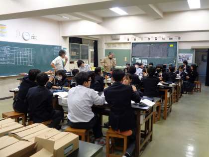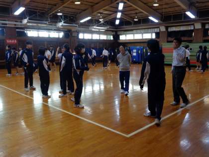 2校時の1年生の授業は、社会、力の大きさとばねの伸び(理科・写真付き)、英語です。2年生は、ダンス(保健体育・写真付き)、東日本大震災について理解しよう(社会)、書写です。