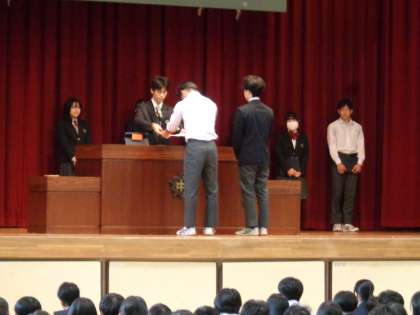 各委員会委員長から委員会の報告と皆さんへのお願い、生徒会本部役員からの連絡、先日の昼休みに行われたドッジボール大会の表彰式を行いました。2学期も後2週間です。充実した学校生活を送りましょう。